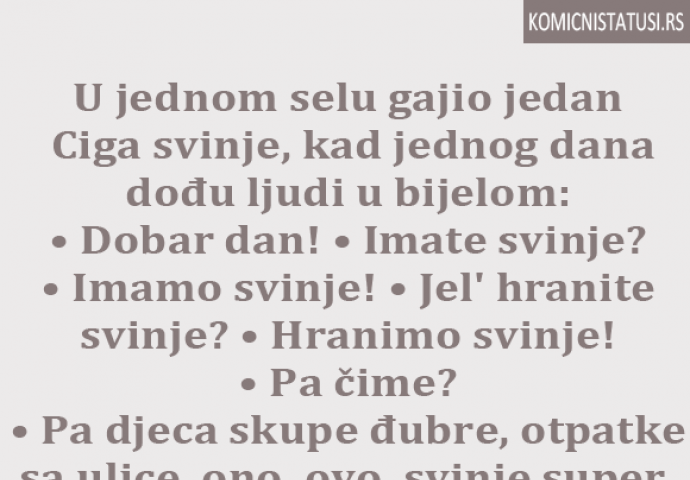 U jednom selu gajio jedan Ciga svinje, kad jednog dana dođu ljudi u bijelom: