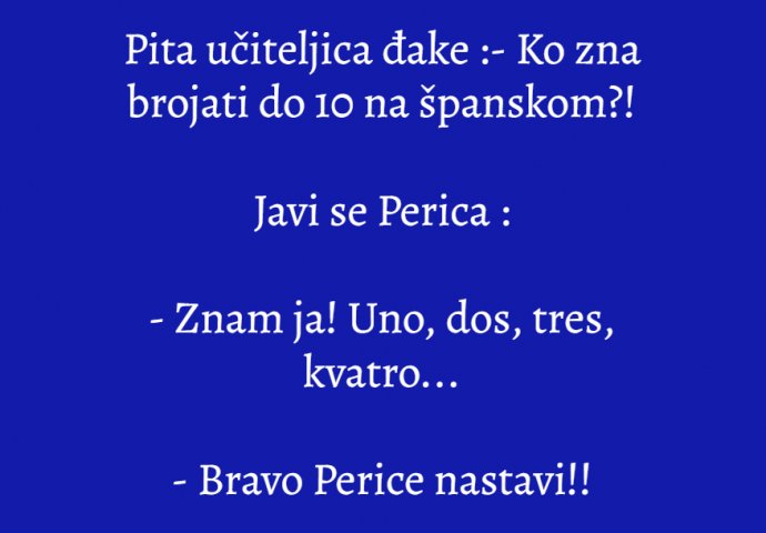 Pita učiteljica đake :- Ko zna brojati do 10 na španskom?!