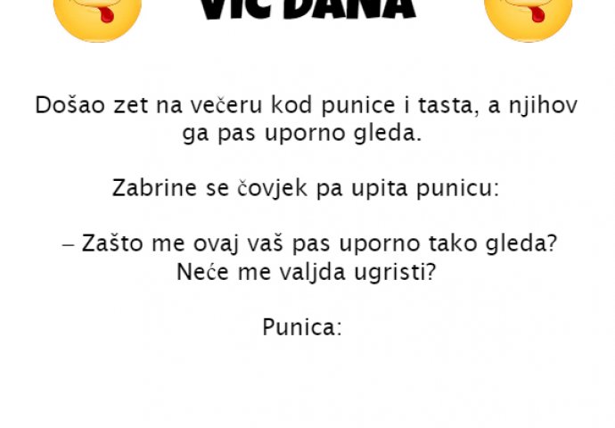 Došao zet na večeru kod punice i tasta, a njihov ga pas uporno gleda.