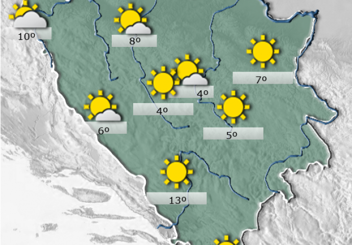 U našoj zemlji danas se očekuje sunčano vrijeme uz prolazno naoblačenje u zapadnim, sjeverozapadnim i centralnim područjima Bosne.