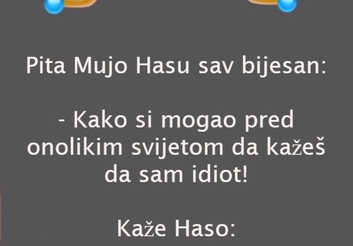 - Kako si mogao pred onolikim svijetom da kažeš da sam idiot!