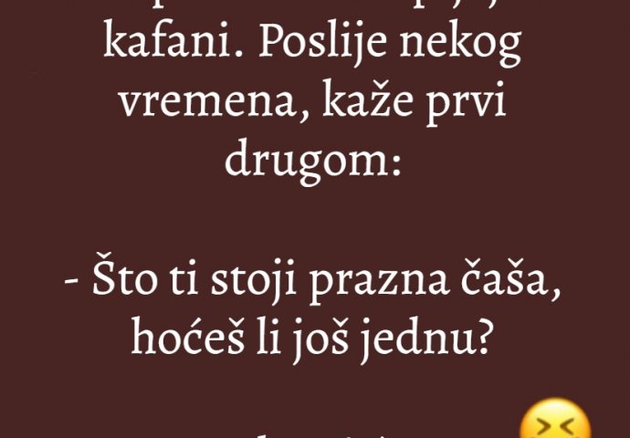 - Što ti stoji prazna čaša, hoćeš li još jednu?