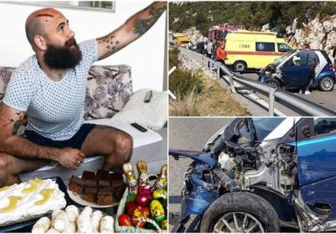 Na svom Instagram profilu objavio je nekoliko fotografija s mjesta nesreće na kojima se vidi gotovo potpuno smrskani automobil i vozilo hitne pomoći. Uz to je objavio i fotografiju na kojoj odmara uz kolače i uskrsne slastice