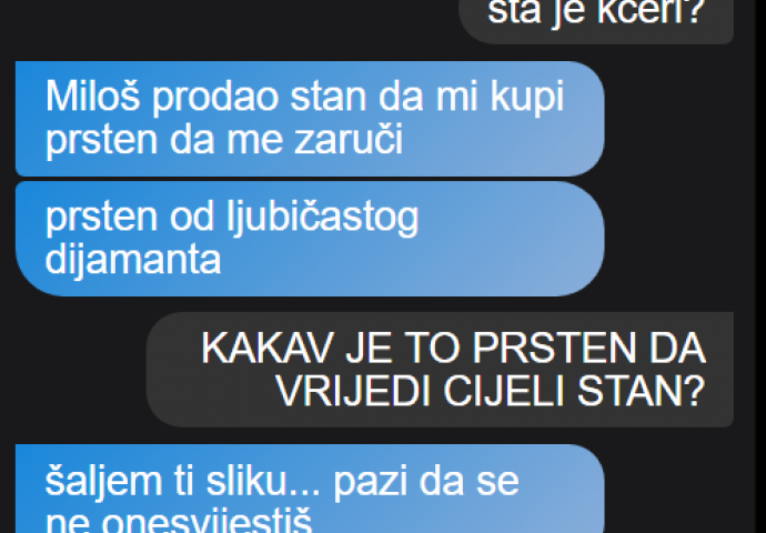 KĆERKA MI JAVILA DA JOJ JE MOMAK PRODAO STAN DA JOJ KUPI ZARUČNIČKI PRSTEN: Kad mi je poslala prsten DOŠLO MI ZLO, ŠTA JE OVO! Kiosk 15.04.20. 17:42 .