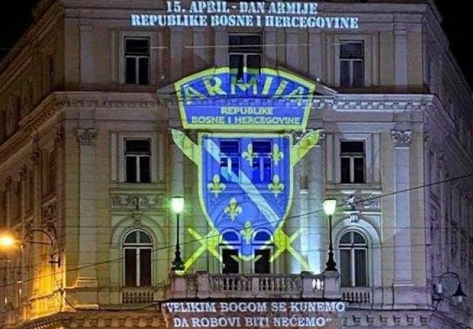 "U čast svim pripadnicama i pripadnicima, posebno šehidima, poginulim borcima, ratnim vojnim invalidima, dobitnicima priznanja ove međunarodno priznate vojne sile na fasadu zgrade projicirana je zastava Armije RBiH sa čuvenom porukom vrhovnog komandanta Armije RBiH rahmetli Alije Izetbegovića: "Velikim Bogom se kunemo, da robovi biti nećemo"!", saopćeno je iz uprave Grad Sarajeva.