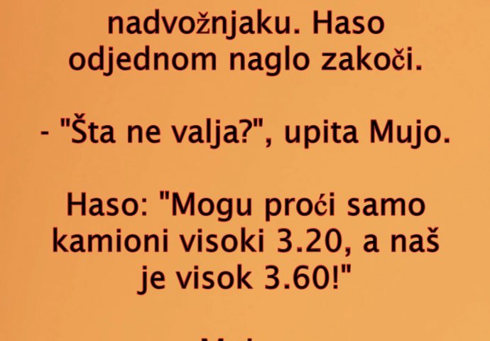 Haso: "Mogu proći samo kamioni visoki 3.20, a naš je visok 3.60!"