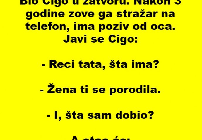 Bio Cigo u zatvoru. Nakon 3 godine zove ga stražar na telefon, ima poziv od oca. Javi se Cigo: