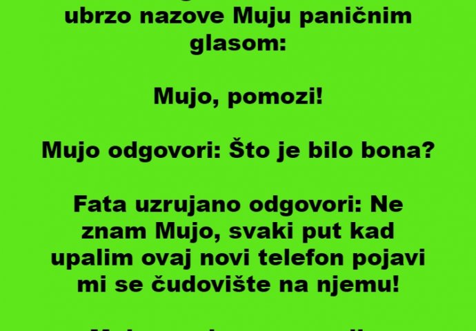 Fata uzrujano odgovori: Ne znam Mujo, svaki put kad upalim ovaj novi telefon pojavi mi se čudovište na njemu!