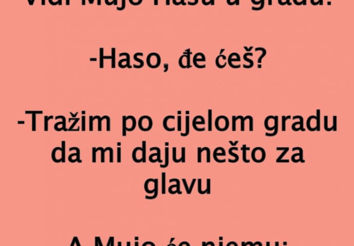 -Tražim po cijelom gradu da mi daju nešto za glavu