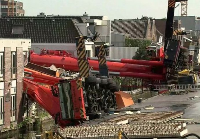 U holandskom gradu Alphen aan den Rijn dva krana su se prevrnula na kuće koje su se nalazile u blizini i tom prilikom je povrijeđeno 20-ak osoba, javlja Anadolu Agency (AA).