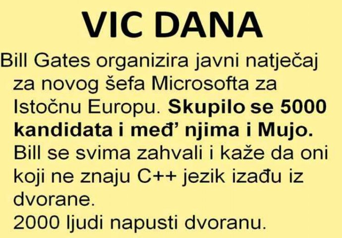 2000 ljudi napusti dvoranu. Mujo nema pojma o C++, ali konta: