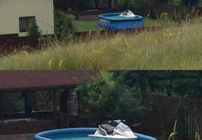 U dvorištu je postavljen bazen, a njemu plutao je ni više ni manje nego jetski. Ostaje nejasno kako su ga ovi ljudi koristili.