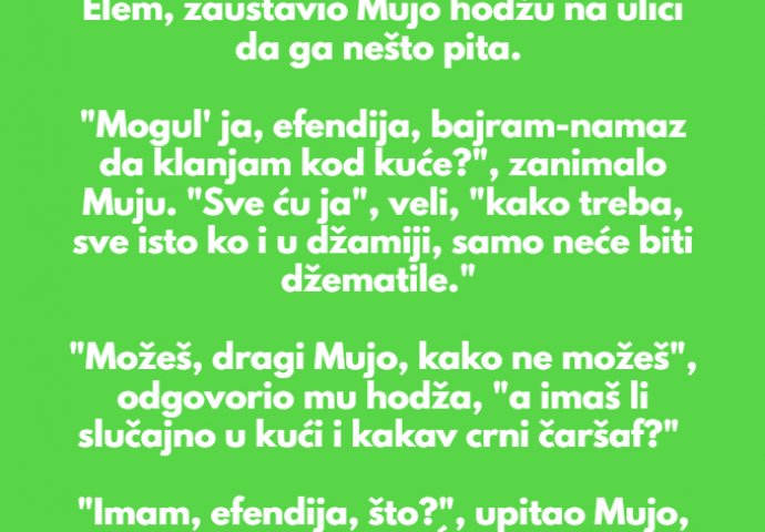 "Imam, efendija, što?", upitao Mujo, a hodža mu odgovorio: