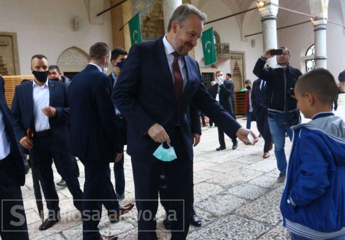 BAKIR IZETBEGOVIĆ DIJELIO BAJRAM BANKU ISPRED DŽAMIJE: Pogledajte slike (FOTO)