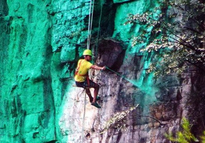 Stanovnik sela Gangshui u zapadnoj Kini obojio je oko 2.000 četvornih metara stijene u zeleno kako bi se ona uklopila u "feng shui" tradiciju.