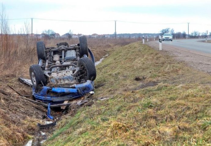 Vozilo je sletjelo sa kolovoza i prevrnulo se.