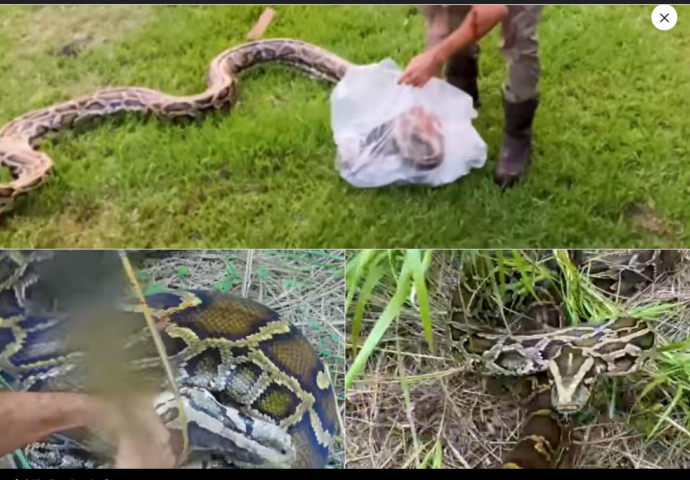 Rijedak primjer gigantskog burmanskog pitona pronašao je prošli tjedan u močvarnom području Everglades u Floridi Mike Kimmel, vlasnik tvrtke Trapping & Wildlife Rescue iz Floride. Dosad je ulovio stotine pitona, ali oni nisu bili duži od 3 metra. Ovaj je pak bio dug pet metara i težak između 60 i 70 kilograma.