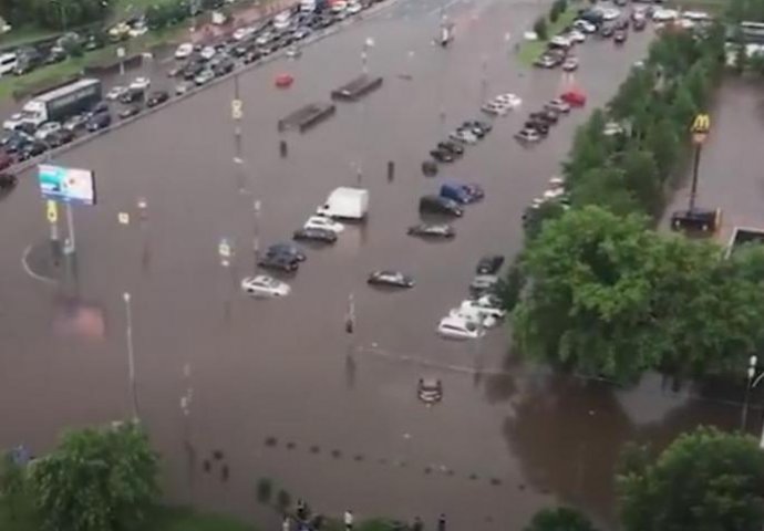 Glavni grad Rusije danas je pogodilo snažno nevrijeme, praćeno obilnim padavinama i gradom. Stanovnici Moskve na društvenim mrežama dijele snimke i fotografije "potopa", na kojima se vidi da automobili plivaju ulicama kao čamci.
