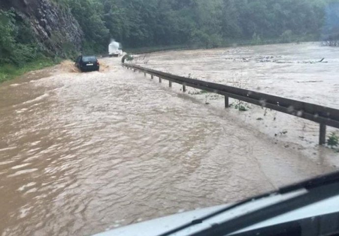 RIJEKA SE IZLILA NA MAGISTRALNI PUT, POTPUNO OBUSTAVLJEN SAOBRAĆAJ: Stanje alarmantno