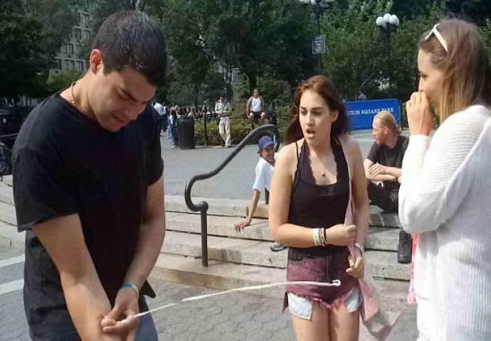 Šta biste vi uradili da se ovako neko našali sa vama na ulici? Zanimljivosti 11.08.15. 09:46 Evo kako ljudi reaguju na lažne bubuljice napunjene majonezom. Evo kako ljudi reaguju na lažne bubuljice napunjene majonezom.