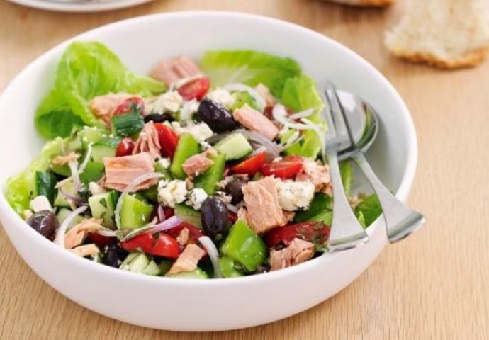 1. Radić narežite na trake, dodajte narezane krastavce, rotkvice, ocijeđeni kukuruz šećerac, masline i ocijeđenu tunu.