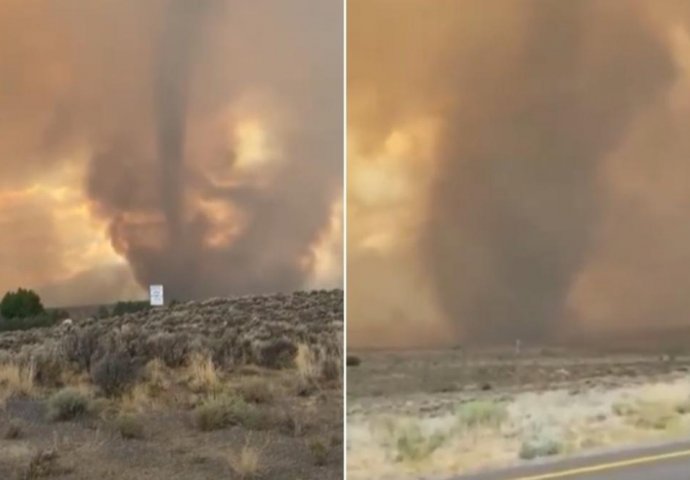 Redak vatreni tornado snimljen je u Kaliforniji, blizu granice s Nevadom, gdje su šumski požari i visoke temperature stvorili savršenu i veoma opasnu oluju.