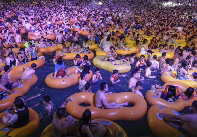Popularni vuhanski akva park bio je ispunjen veselim mladim ljudima u kupaćim kostimima, koji su "đuskali" uz elektronsku muziku, mnogi u malim gumenim čamcima ili prosto plivajući.