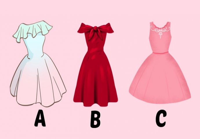 Na ovoj slici su prikazane tri haljine. Vi se morate odlučiti za onu koja vam se najviše sviđa. Ona haljina koju odaberete precizno će vam otkriti kakvi ste u očima muškarca kojeg volite.