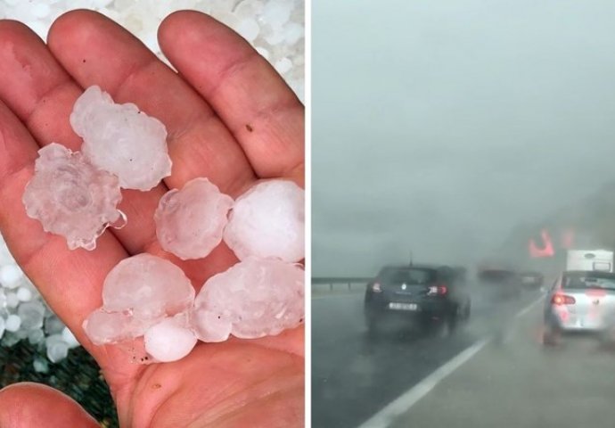 STRAHOTA, PADALA TUČA VELIČINE ORAHA, A NA CESTAMA HAOS: Sve potopljeno! (FOTO)