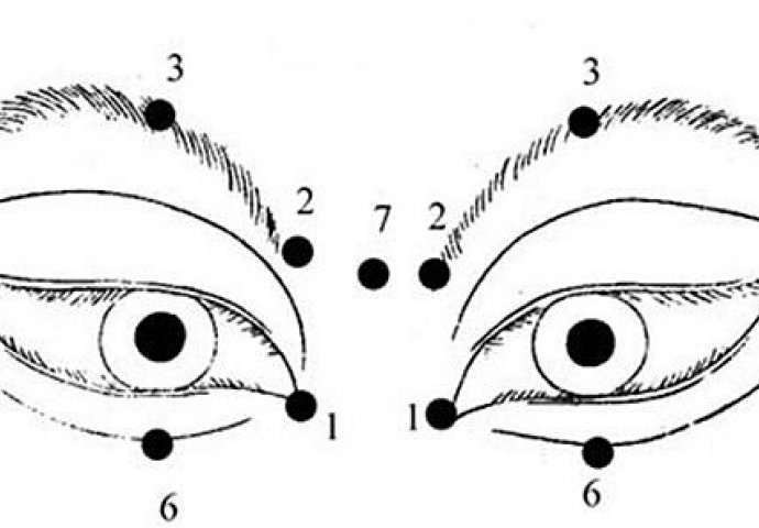 Vrhovima srednjeg prsta i kažiprsta lako pritišćite očne jabučice 8 puta. Radite tako da masaža ne izaziva neugodne osjećaje. Nakon toga, vrhovima kažiprsta pritisnite ove točke po 2 puta.