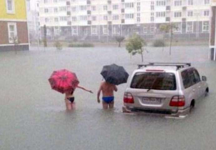 Kad je Rusima "ludilo" dobro, zašto nama da ne bude smiješno? (FOTO) Zanimljivosti 12.08.15. 23:26 U nekoj paralelnoj realnosti, tačnije Rusiji, ovi ljudi zaista postoje. I stvarno im je super. Ma nema veze što je poplava, možemo se i tu kupati, i to sa kišobranima.