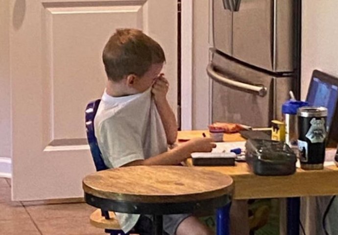 Cijeli svijet bori se sa pandemijom, a roditelji širom svijeta pitaju se kako će izgledati škola i koliki rizik ona nosi. Svaka država radi na svom pristupu, a jedna petogodišnjak iz Amerike postao je viralan nakon što ga je majka fotografisala dok u suzama preko kompjutera prisustvuje nastavi u vrtiću.