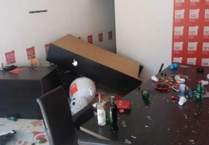 Uništene su i kancelarije Socijaldemokrata u tom gradu, jedno policijsko vozilo, a sve su uradili građani, pripadnici opozicije kako se navodi, u majicama "Ne damo svetinje - srpska čast".