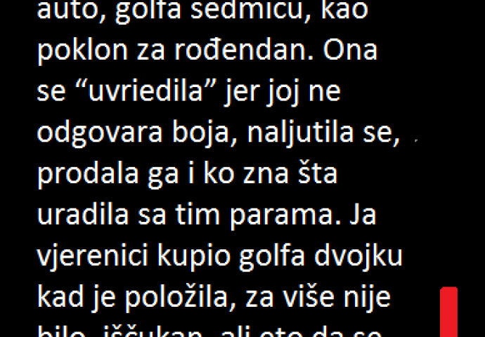 "Drugar djevojci kupio nov auto, golfa sedmicu, kao poklon za rođendan."