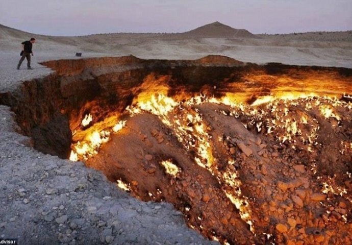 26 čarobnih destinacija za koje vjerovatno nikada niste čuli Arhitektura i dizajn 13.08.15. 20:03 Postoji mnoštvo nevjerovatnih mjesta na svijetu, neka od njih su toliko divna da izgledaju kao da nisu sa ovog svijeta. ‘’Vrata pakla’’, dobila su ime zbog velikih plamenova u središtu kratera. Nalaze se u Darvazi, Turkmenistan.