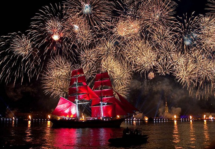 Ovaj godišnji međunarodni festival umjetnosti održava se u St. Petersburgu u periodu od ponoći sunca koja se javlja u regijama Arktičkog kruga. Glavna atrakcija je crveno jedro sa kojim brod plovi duž rijeke Neve zajedno sa spektakularnim zabavljačima i velikim vatrometom.