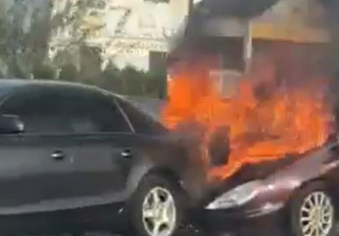 DO SADA NEVIĐENA SAOBRAĆAJKA U BANJALUCI: Sudarilo se nekoliko vozila, jedan automobil gori (VIDEO)