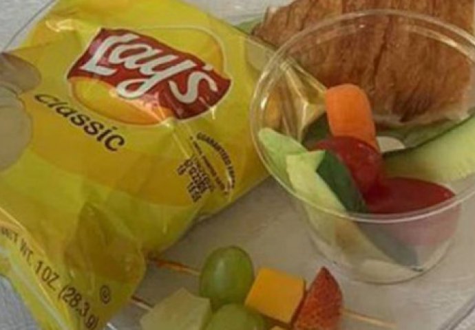 "Ovo smo dobili za glavno jelo - čips, malo sirovog povrća, malo voća na štapićima i pola kroasana. Osim toga, cijela sala je izgledala neuredno. Strašno", napisala je.