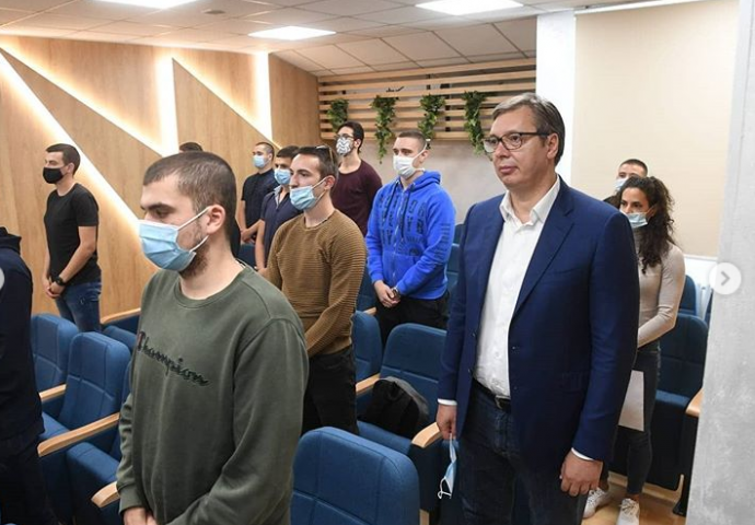 Na zajedničkoj konferenciji za novinare poslije sastanka s evropskim komesarom za proširenje Oliverom Varhelyijem, Vučić je kazao da je na zatvorenom sastanku s predstavnicima nevladinih organizacija u subotu "jedan od prisutnih zamolio sve da ustanu i odaju počast poginulim Albancima".