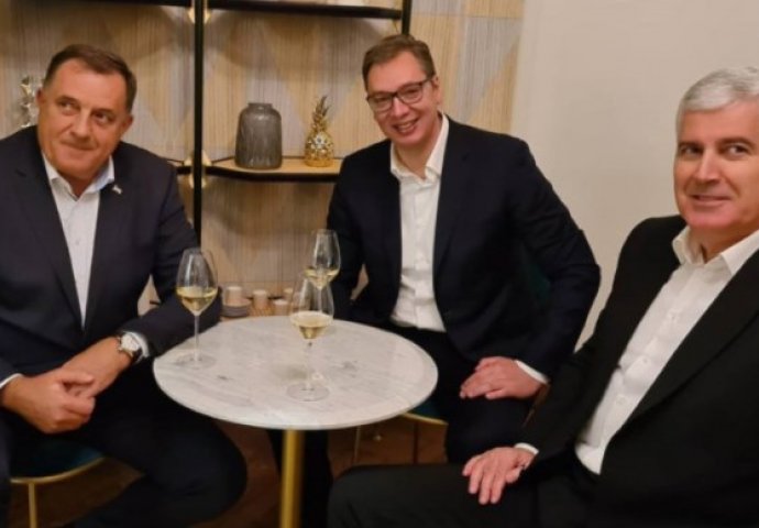 Predsjednik Srbije Aleksandar Vučić, član Predsjedništva BiH Milorad Dodik i zamjenik predsjedavajućeg Doma naroda Parlamentarne skupštine BiH Dragan