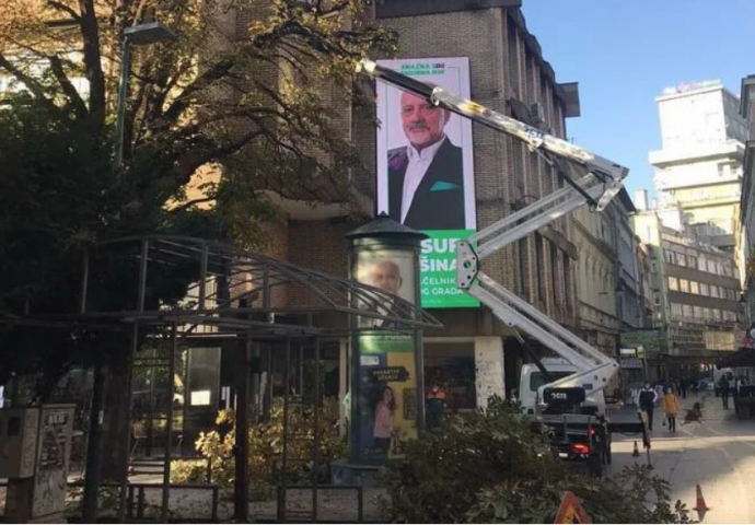 Naime, njegov veliki plakat može se vidjeti na zgradi u koja se nalazi preko puta Tržnice na glavnoj šetnici ulici Ferhadiji.