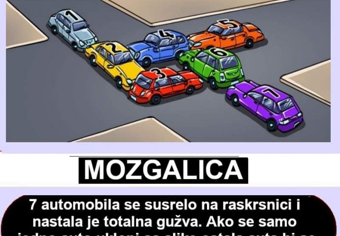 Potrebno je da odgovorite na pitanje koji biste automobil pomjerili na priloženoj ilustraciji kako biste rješili problem i omogućili normalan tok saobraćaj.