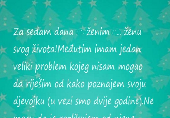 Za sedam dana se ženi a ne zna ko mu je zapravo buduća žena! Zanimljivosti 19.08.15. 18:37 Buduća žena mu ima sestru, i to ne bilo kakvu...