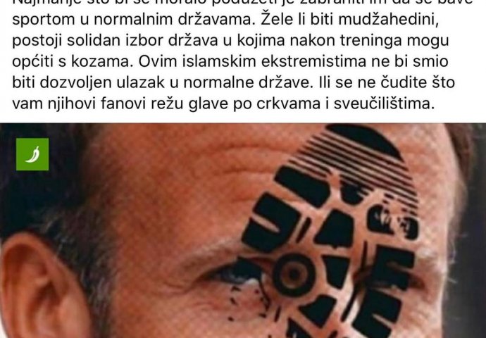 U statusu on dalje navodi kako bi im trebalo zabraniti da se bave sportom, a onda ih naziva i islamskim ekstremistima.