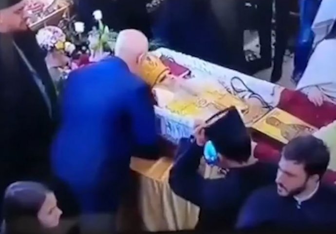 Na snimku sa sahrane, koji je osvanuo na YouTubeu, Baković stoji nad odrom preminulog mitropolita, a potom dodaje svoj telefon jednom od prisutnih sveštenika kako bi ga fotografisao dok ljubi Amfilohijevu krunu.