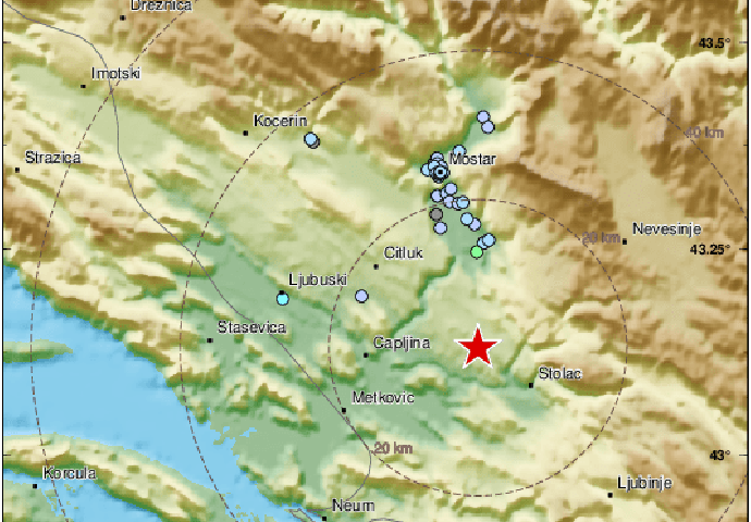 I iz Federalnog hidrometeorološkog zavoda je potvrđeno da je zabilježen zemljotres i to u 13.17 sati na području Mostara.