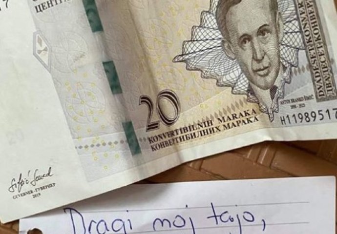 Djevojčica po imenu Hana napisala je dirljivu poruku svom ocu ostavivši mu 20 KM sa popije kafu i doručkuje. Na slici koja se širi društvenim mrežama prikazana je novčanica od 20 konvertibilnih maraka i pored nje ceduljica sa porukom: