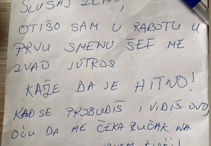Na društvenim mrežama pojavila se poruka koju je suprug ostavio ženi, nakon što je hitno morao na posao.
