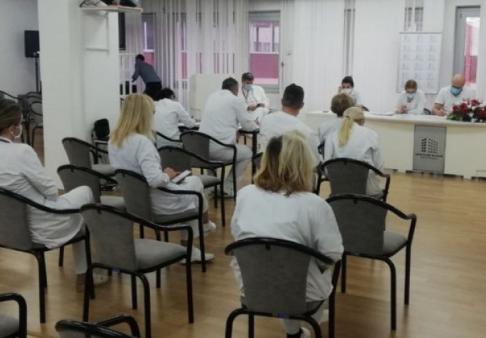 Na jutrošnjem, proširenom sastanku Covid tima Opće bolnice "Prim. dr. Abdulah Nakaš" Sarajevo, analizirano je zdravstveno stanje svakog pacijenta i plan za dalje liječenje. Inače, ovom timu zdravstvenih profesionalaca se svakodnevno javljaju dobrovoljci sa drugih bolničkih odjela, koji žele dati svoj doprinos u liječenju Covid pacijenata, ali i pomoći svojim kolgama.