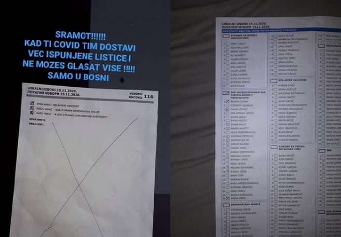 - Ovako to izgleda kad neko glasa za Vas, i krade Vas na Vaše oči. Covid tim mi je dostavio u koverti već ispunjene listiće. Na moju žalbu od strane izbornog tijela mi je rečeno da će moj glas biti nevažeći i da ne mogu više glasati! Ne kađem da kriv SDP jer je glas za njih u Vijeću, možda su i oni sami žrtve u ovoj prevari!!!, napisao je Adnan Balta.